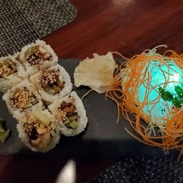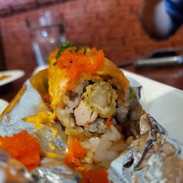 Come with crunchy, masago, spicy scallops and avocado. Hot and spicy.